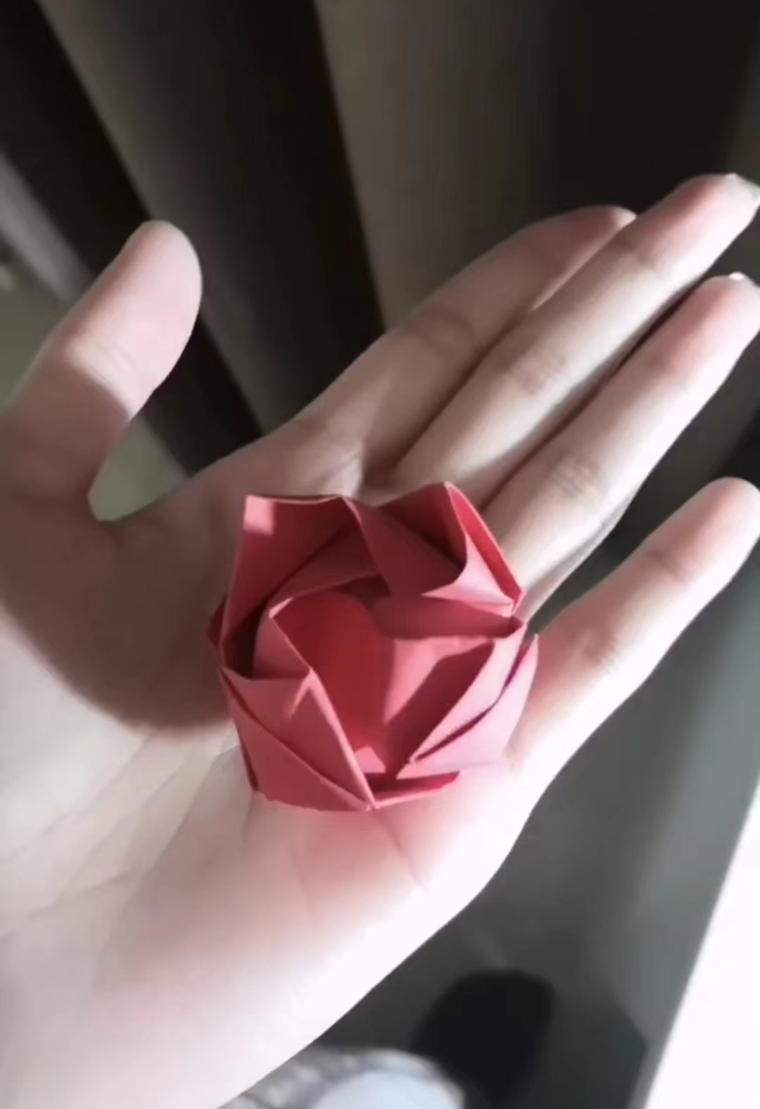 “有人说手工的意义在于灵感创作,而创作在于生活。鲜花一直被人们赋予浪漫的含义,我常常想如果美好的一天可以从一束鲜花开始,那该多好啊。这次活动我便手工做了一朵玫瑰,小小的玫瑰上面是我对美好生活的向往。从精心挑选纸张到认真地学习折叠,我也在想手工的意义是什么。我想,手工的意义就在于有人愿意把生活中的一段时光,物化给你,将温柔的含义赋予在一折一痕中。我想这不简简单单是一张纸了,因为我,它有了生命。我想这就是手工的意义吧。”