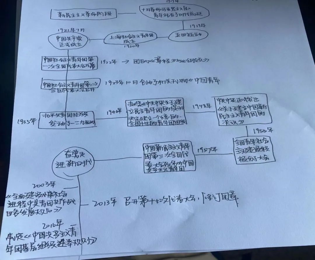 旅游管理2002团支部的雷克绘制重大团史时间轴,不断学习感悟,以史为鉴。
