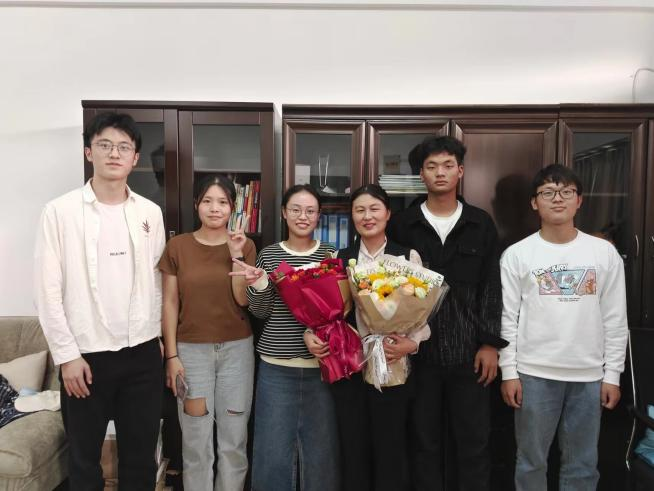 在“问候老师,我班争先”活动中,2021级与2022级团员分别线下、线上向老师献花、问候,表达对老师的教导与关爱的感恩之情,与老师亲密互动。