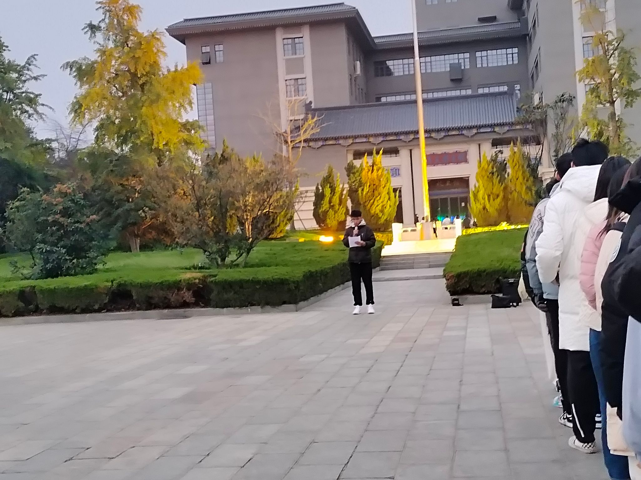 11月13日清晨,全院本科生、研究生在大礼堂前集合,举行隆重的升国旗仪式,开展国旗下的主题演讲。本次活动由2023级年级团支书耿永昊担任主持人。活动伊始,耿永昊对本次活动进行了简单的介绍,并鼓励公司团员青年要坚定理想信念,为实现中华民族伟大复兴的中国梦而努力奋斗。