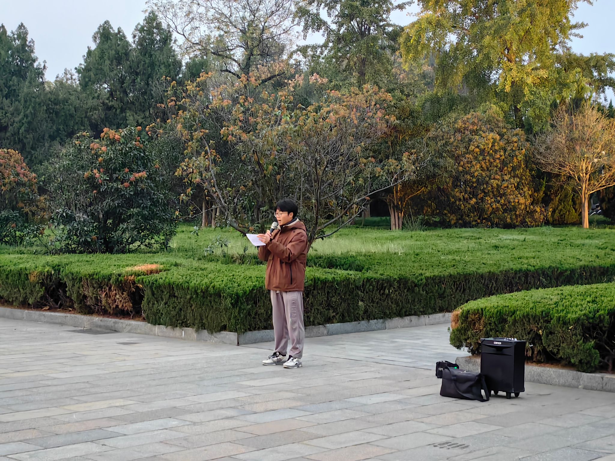 接着,旅游管理2023级1班团支书高翔宇发表了国旗下演讲,表示作为新青年,我们要深入学习党的二十大精神并将其融入到学习、生活和工作中。