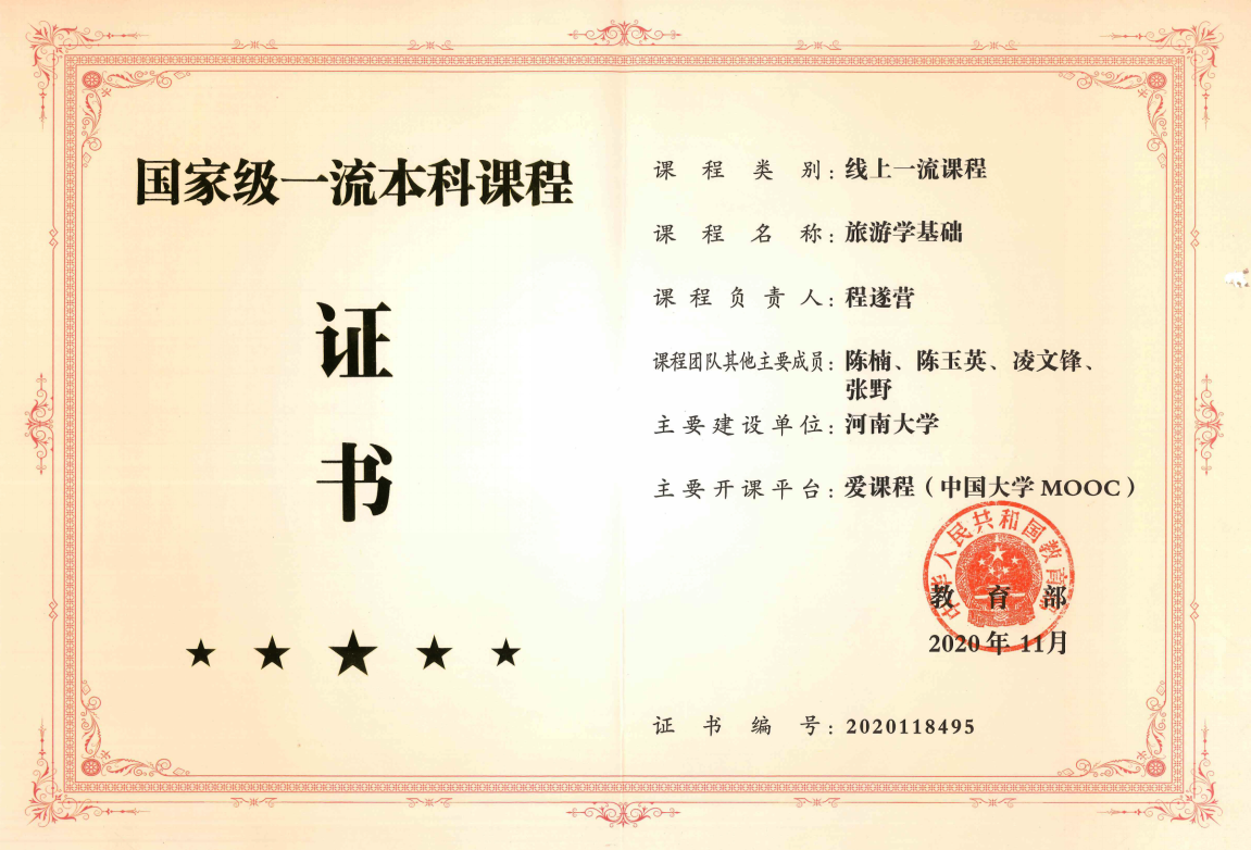 近日,公司程遂营教授主讲的国家级精品在线开放课程《旅游学基础》被教育部认定为“国家级一流本科课程”。该课程团队由程遂营、陈楠、陈玉英、凌文锋、张野、余永霞等教师组成,课程类别为“线上一流课程”,主要开课平台为爱课程(中国大学MOOC)。在此,向课程团队表示祝贺!
