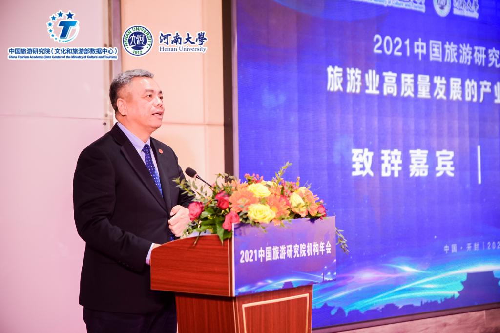 朱建伟在讲话中指出,河南省委、省政府高度重视文化和旅游产业发展,在今年5月份召开的全省文化旅游大会上,提出了建设文化旅游强省的奋斗目标,谋划了“一带一核三山五区”的文旅发展布局。当前,全省文化旅游系统正在朝着这一宏伟目标开拓进取、奋力前行。他表示,本次年会是首次在中原地区高校举办,也是在“十四五”规划的关键节点举办,真诚希望各位专家为河南旅游业发展把脉问诊、建言献策。