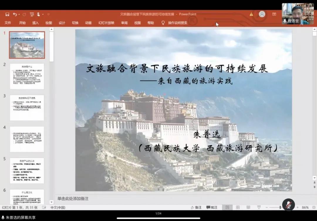 为进一步开阔公司师生的学术视野,提高公司员工学术研究能力,8月10日,西藏民族大学朱普选教授以视频会议的方式,为公司师生做了题为“文旅融合背景下民族旅游的可持续发展”的学术报告。本次报告会由经理程遂营教授主持。