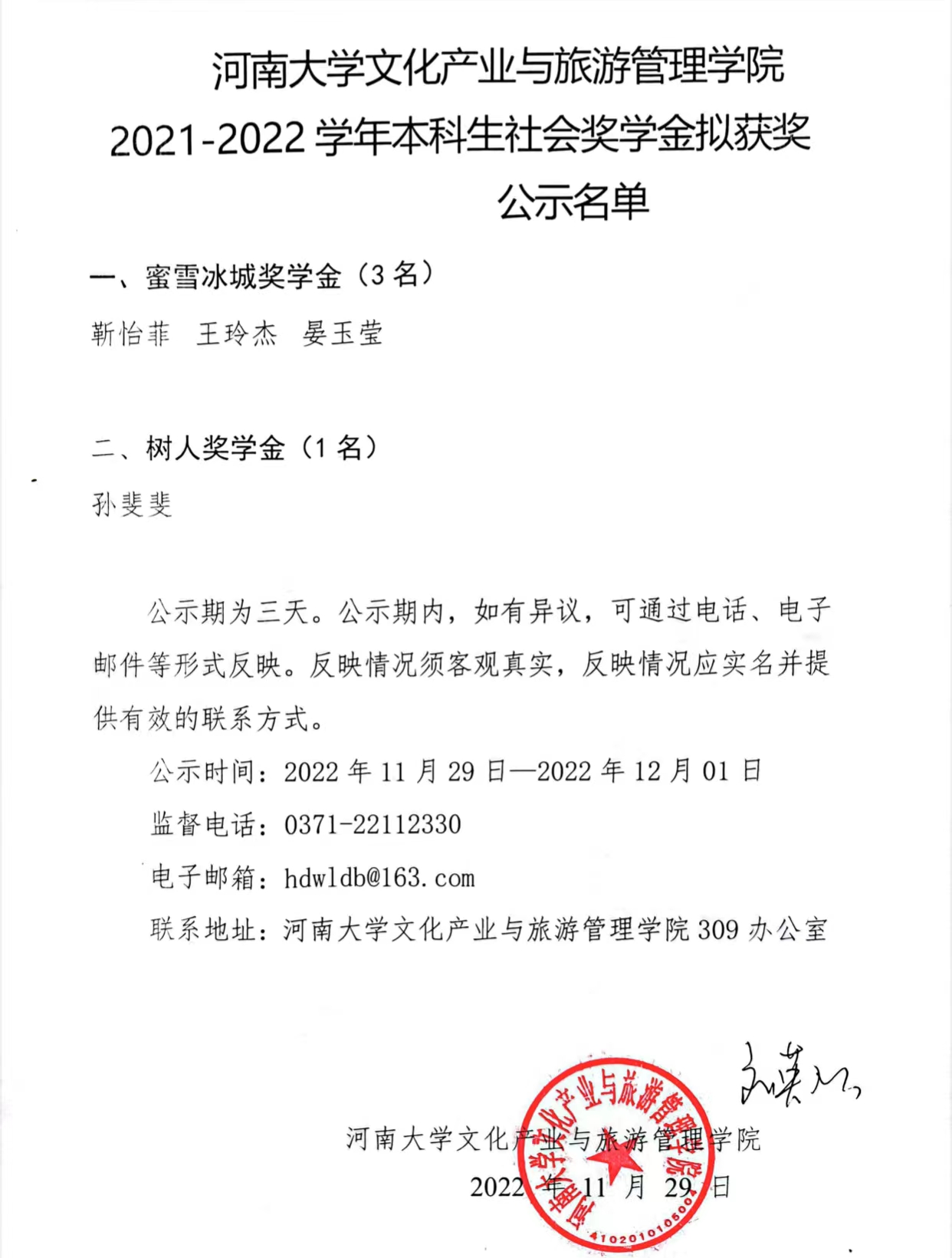 上一条:关于在全校开展“2022年科学道德和学风建设宣传月”活动的通知 下一条:best365足球官网文化产业与旅游管理公司2021-2022学年本科生评先奖优拟获奖个人、集体公示名单