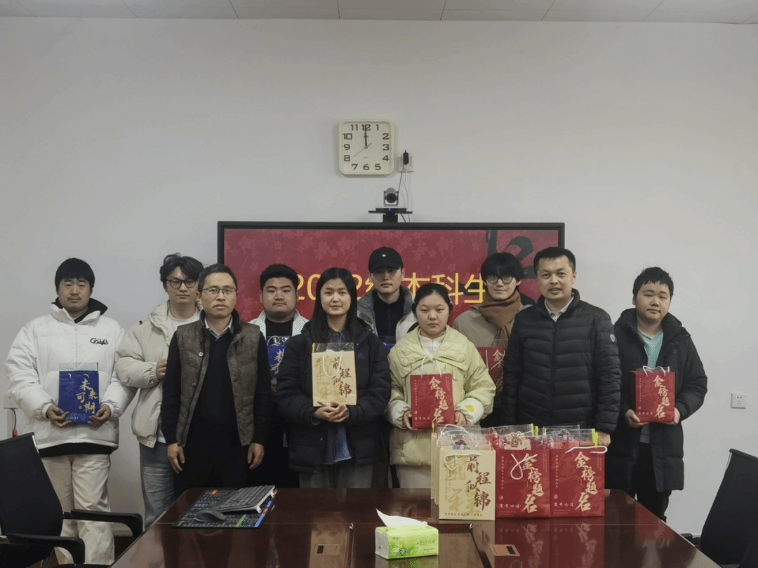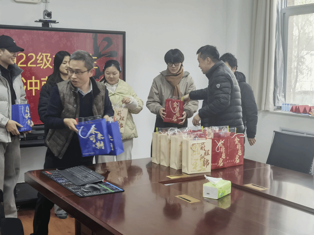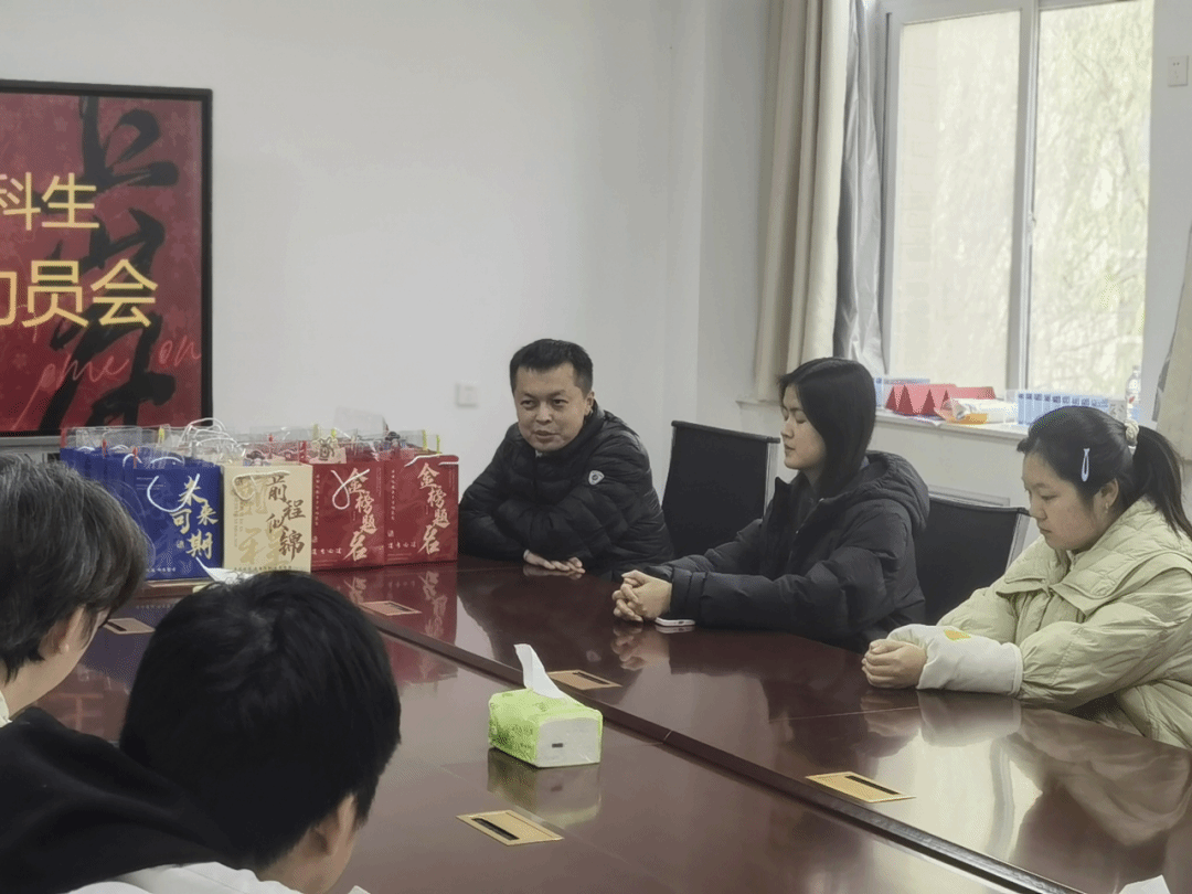 刘英钦在会上致辞,充分肯定同学们备考以来的不懈坚持与奋力拼搏,决战冲刺阶段,更要沉心定气、筑牢知识根基,细致查漏补缺,精进知识体系每一处细节。他还分享诸多考场实战干货,从合理分配答题时间到精准把握书写规范,皆是决胜考场的实用妙招。随后,他亲手将满载殷切期许与真挚祝福的考研礼包送到同学们手中,小小礼包传递浓浓关怀,更凝聚起强劲冲刺力量。