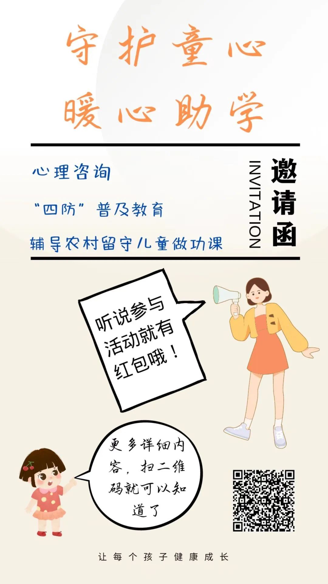 随着我国政治、经济、文化的不断发展,我国的城市化进程也在不断的加快,为了响应国家号召,增援城市建设,越来越多的农村青壮年纷纷涌向城市,进而在农村产生了一群特殊的弱势群体--留守儿童。少年时期是人性格形成和发展的重要时期,是人生的重要阶段,此时期的儿童具有复杂的心理。同时,他们也容易受到社会不良现象的影响,非常需要父母的教育和引导。而由于种种原因,父母在孩子很小的时候就外出打工,长时期不与孩子接触,加上祖父母的僵化教育和过分的溺爱,使许多孩子的身心健康受到了极大的影响。青少年儿童作为国家的希望应该受到重视,他们的身心健康是国家发展的重要保证,让我们携起手来,关注留守儿童,关爱他们的心理健康,为祖国未来的花朵献出我们的爱心。