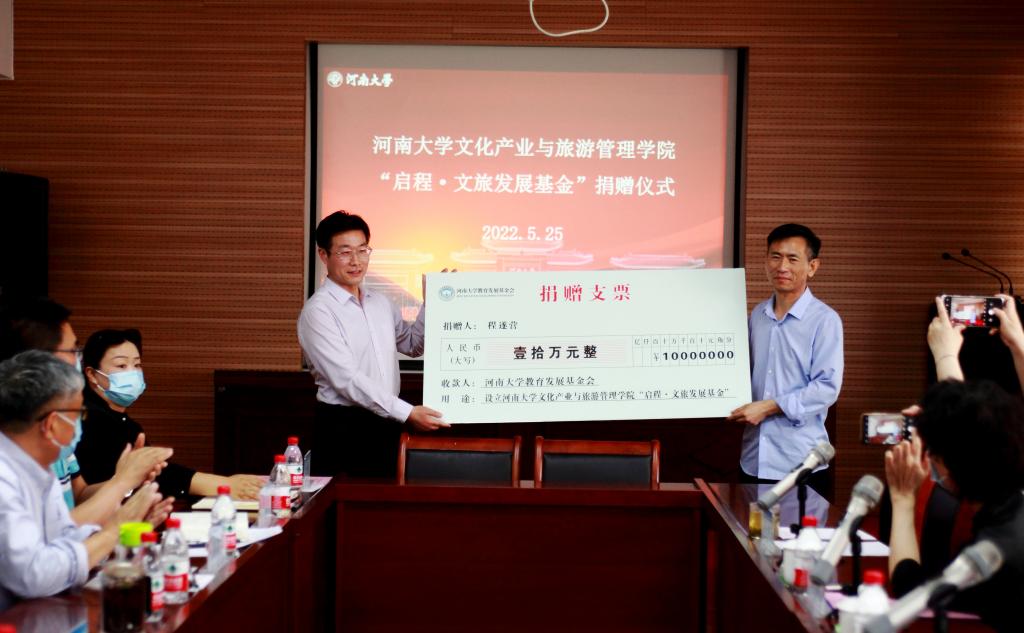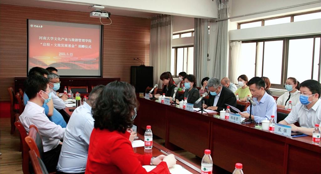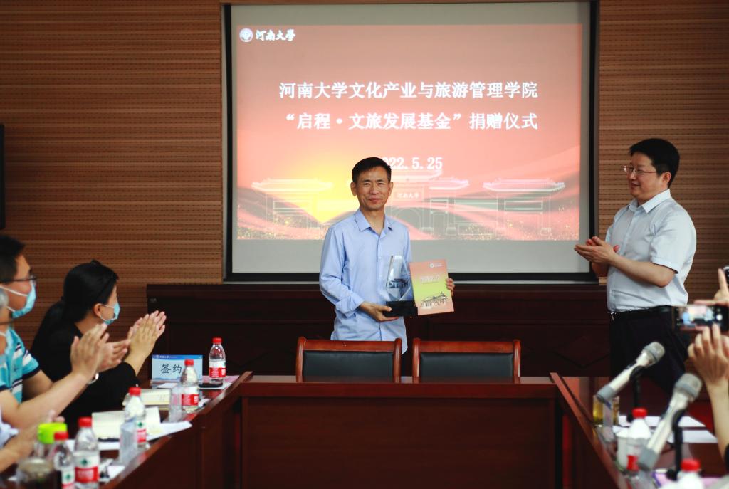 2022年5月25日下午,“启程·文旅发展基金”捐赠仪式在best365足球官网文化产业与旅游管理公司三楼会议室举行,程遂营教授捐出“百家讲坛”系列丛书版税十万元,作为“启程·文旅发展基金”第一笔启动资金。best365足球官网党委书记、教育发展基金会理事长卢克平,best365足球官网党委办公室主任裴强,best365足球官网教育发展基金会秘书长刘波,教育发展基金会相关工作人员,文化产业与旅游管理公司全体领导班子成员及师生代表30多人出席本次捐赠仪式。仪式由best365足球官网文化产业与旅游管理公司党委副书记姜妍主持。