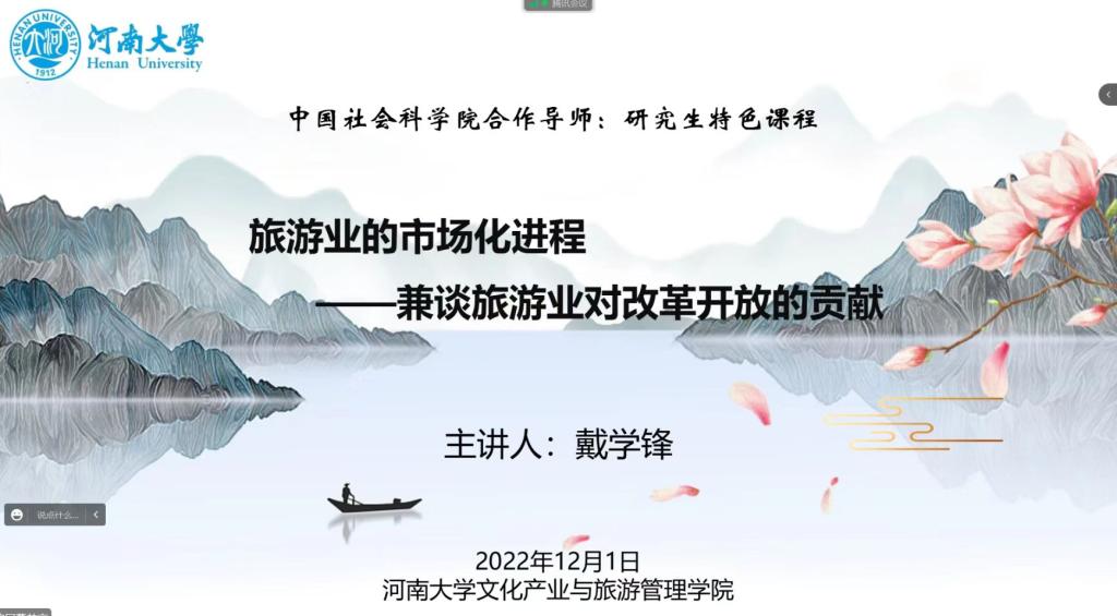 12月1日下午,中国社会科公司戴学锋研究员以线上方式为公司师生做了题为《旅游业的市场化进程——兼谈旅游业对改革开放的贡献》的学术讲座。讲座由文化产业与旅游管理公司副经理王东峰主持,公司师生100余人到会。