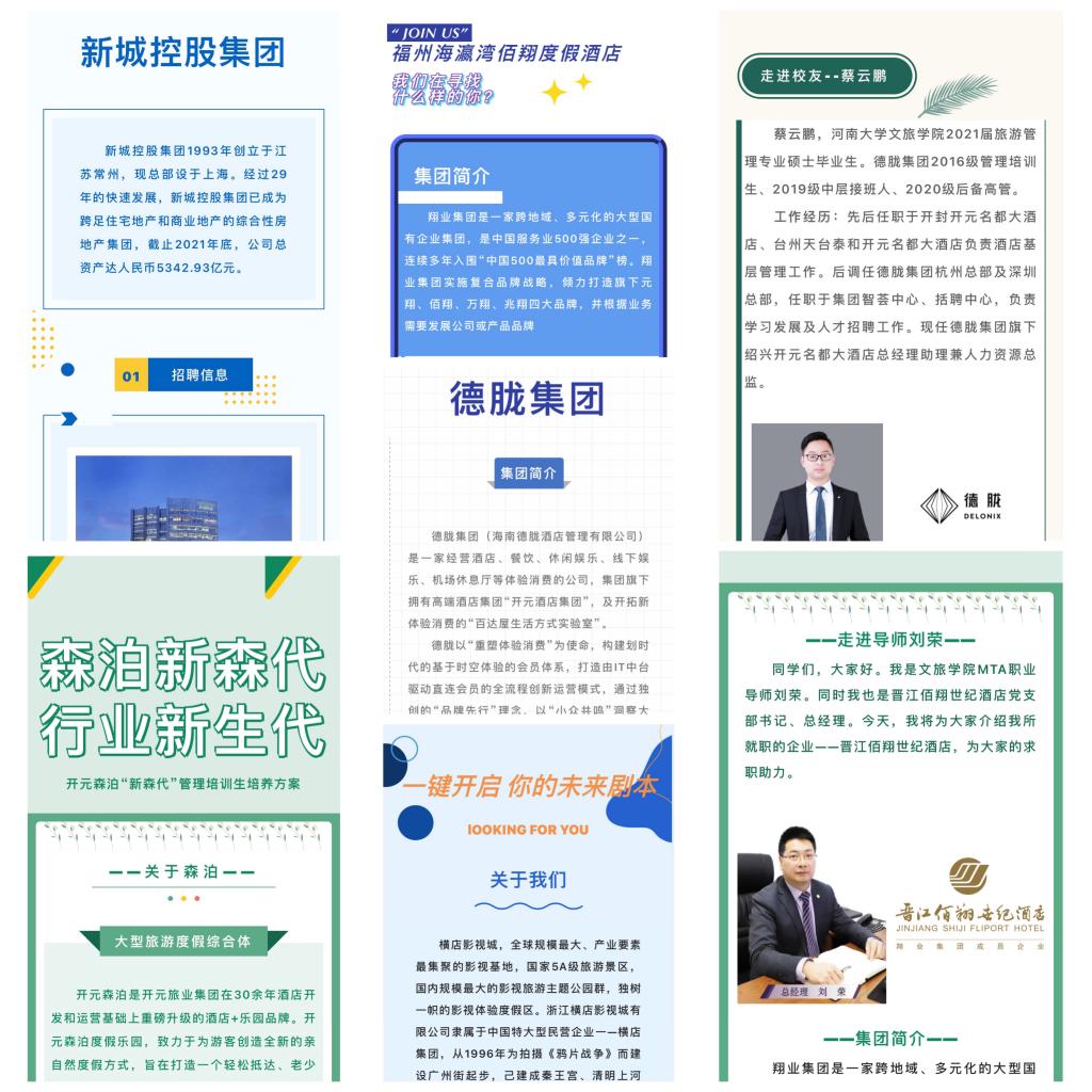 为营造良好就业氛围,持续推进毕业生就业工作,文化产业与旅游管理公司充分发挥员工作用,积极联系行业领域内优秀员工,整合优势资源,进行招聘信息精准推送,为公司毕业生提供专业对口岗位。目前,来自绍兴开元名都大酒店、晋江佰翔世纪酒店等多家单位的员工共为毕业生提供涵盖酒店营销类岗位、酒店财务类岗位在内的职位共计56个。与此同时,员工们还就求职经验、工作经历、职业规划与发展等内容进行分享。目前,已有部分毕业生表示有意愿与员工企业进行对接,争取拿到offer,顺利实现就业。