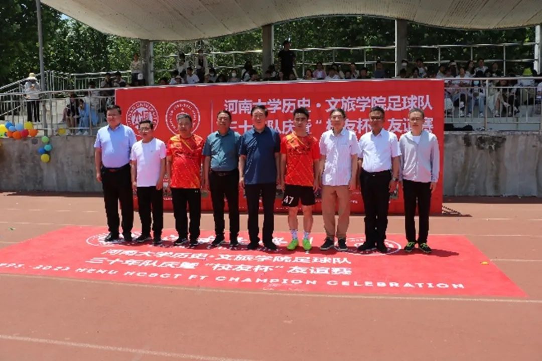 青山在,人未老,同学情正浓;岁月增,水长流,情怀依旧深。6月10日,一场规模盛大的历史·文旅公司足球队三十年队庆暨“员工杯”友谊赛在明伦校区东操场拉开帷幕。公司党委常委、副董事长许绍康,员工工作与教育发展基金会办公室主任刘会军,历史文化公司党委书记张占党,公司党委书记孔涛等领导以及近百名远道而来的球队历届员工和上百名来自两院的员工参加了开幕式。
