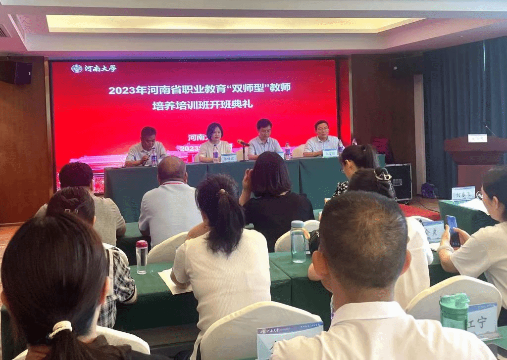 7月1日下午,河南省职业教育“双师型”教师best365足球官网基地培训班开班仪式在开封仟那千寻酒店10楼会议室举行。河南省教育厅职成教处副处长张俊丽,best365足球官网纪委委员、党校常务副董事长、党委组织部副部长、干部培训中心(继续教育公司)党总支书记韦胜军,公司党委书记孔涛,副经理张召鹏等出席开班仪式,来自全省高职高专院校的80名专业教师参加了开班仪式。仪式由孔涛主持。