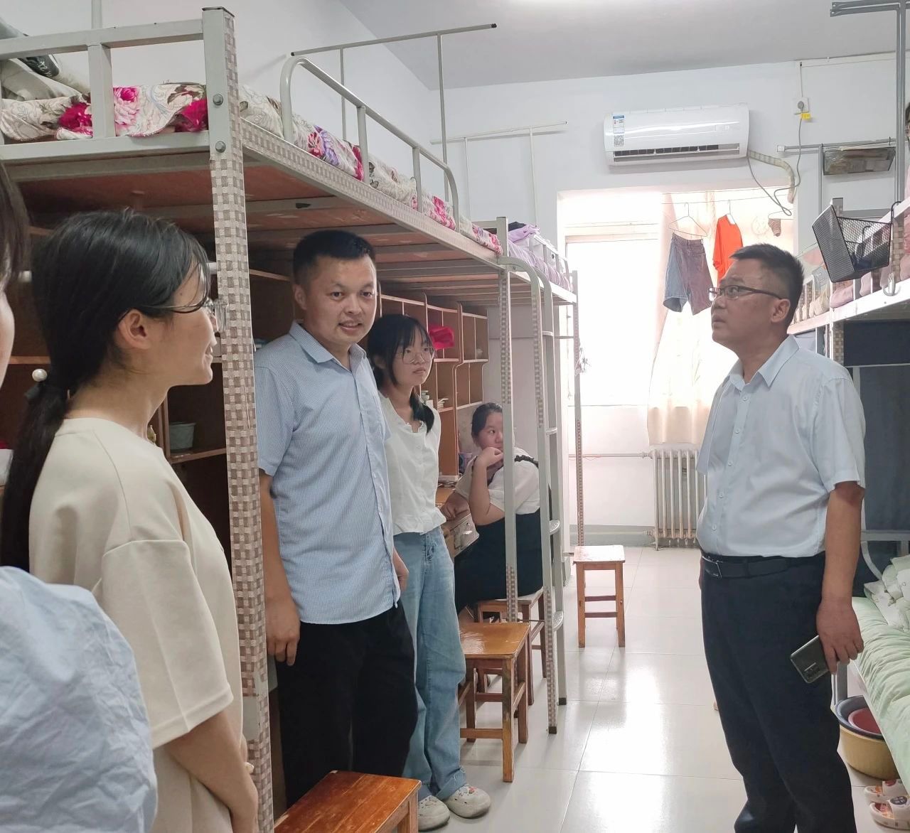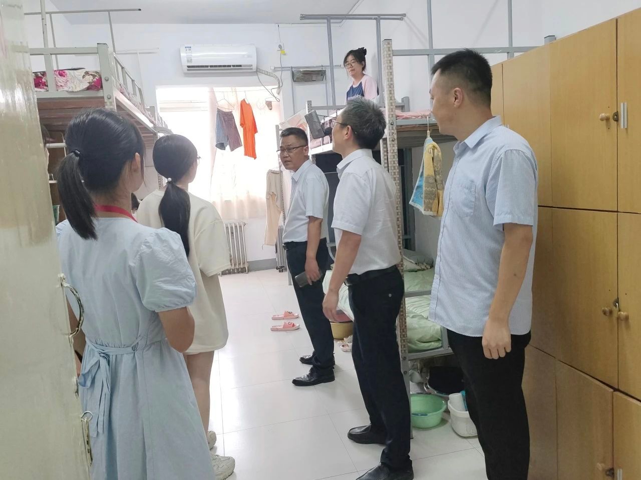 首先,公司党委书记一行在2023届新生代表的带领下走访了女生宿舍,全面观察了员工宿舍的卫生和安全情况,细致地回答了员工们刚入学以来普遍较为关心的生活问题,并对女生宿舍的良好环境表示了肯定。院领导与员工们进行了亲切交谈,在得知新生们是来自五湖四海后便询问了员工们是否相处得融洽,有没有遇到什么困难并表示来到我们文旅大家庭,大家有了更多相互学习的契机,新生入学教育是增强员工专业认知的重要环节,也是大家彼此熟悉尽快驶入大学轨道的主要方式,大家更应该重视明天的新生入学教育。