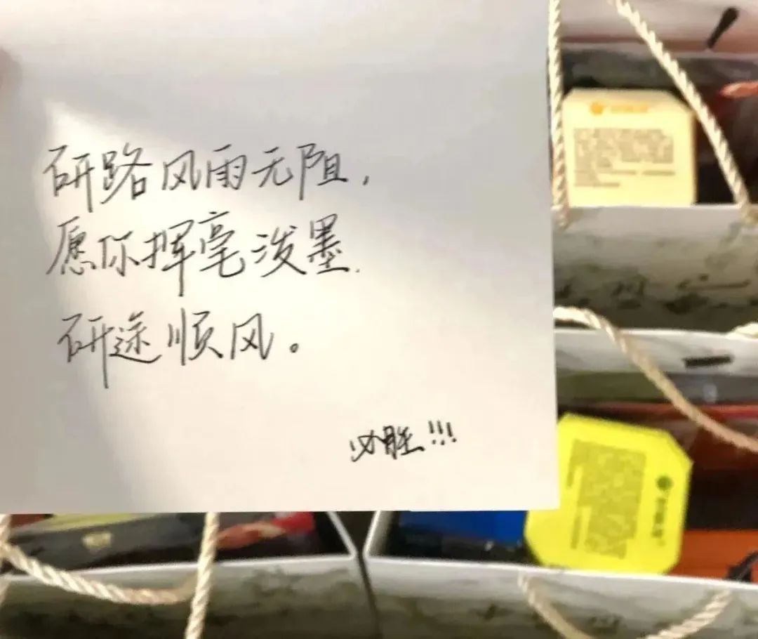 特别注意的是,在此次考研大礼包放送中,公司团委员工会还特别为考研的学长学姐们准备了手写贺卡。祝愿学长学姐们能够乘风破浪,全力以赴,在考试中蟾宫折桂,金榜题名!