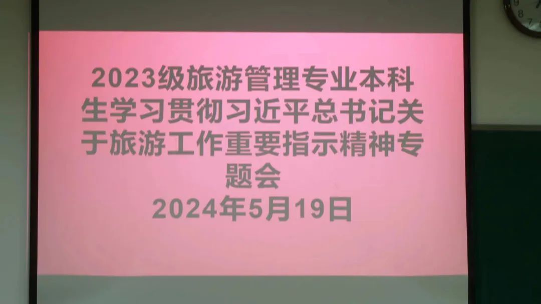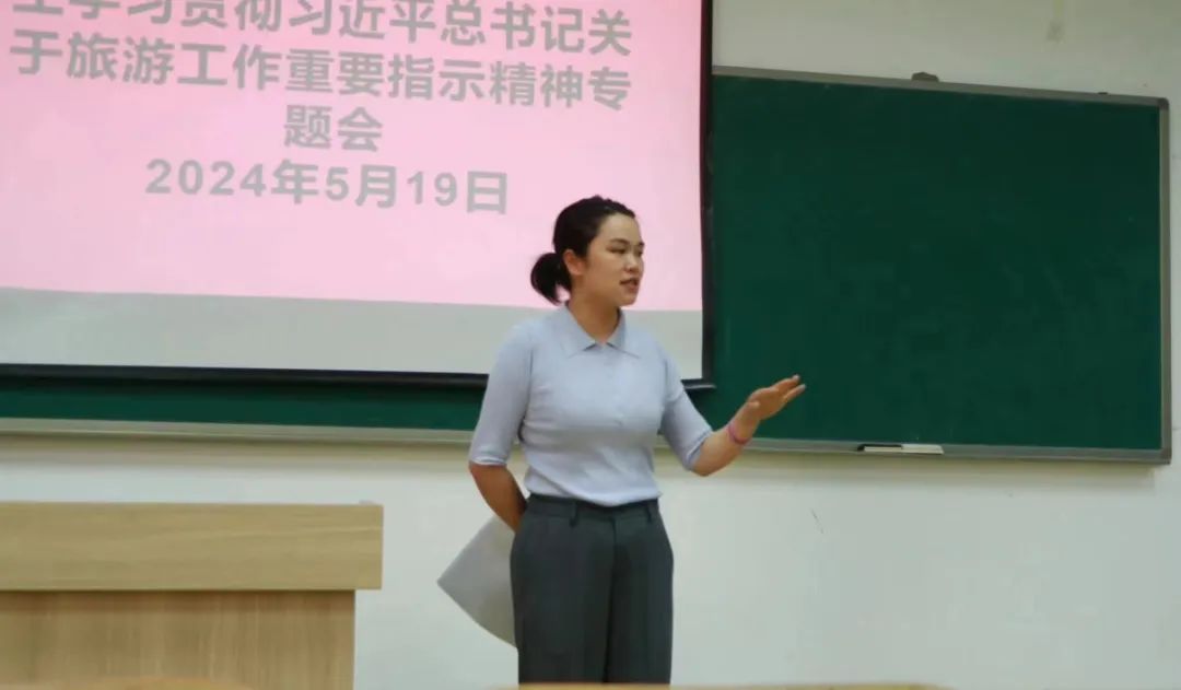 5月19日下午,公司召开学习习近平总书记《着力完善现代旅游专业体系加快建设旅游强国 推动旅游业高质量发展行稳致远》讲话精神专题会。会议旨在深入学习贯彻习近平总书记的讲话精神,强化员工责任感与使命感,为推动旅游业高质量发展提供长久动力。此次会议由辅导员老师王琳琳主持,best365足球官网副经理张召鹏、中国旅游研究院文化旅游研究基地副主任肖建勇、青年教师代表高春留和2023级全体员工参加会议。