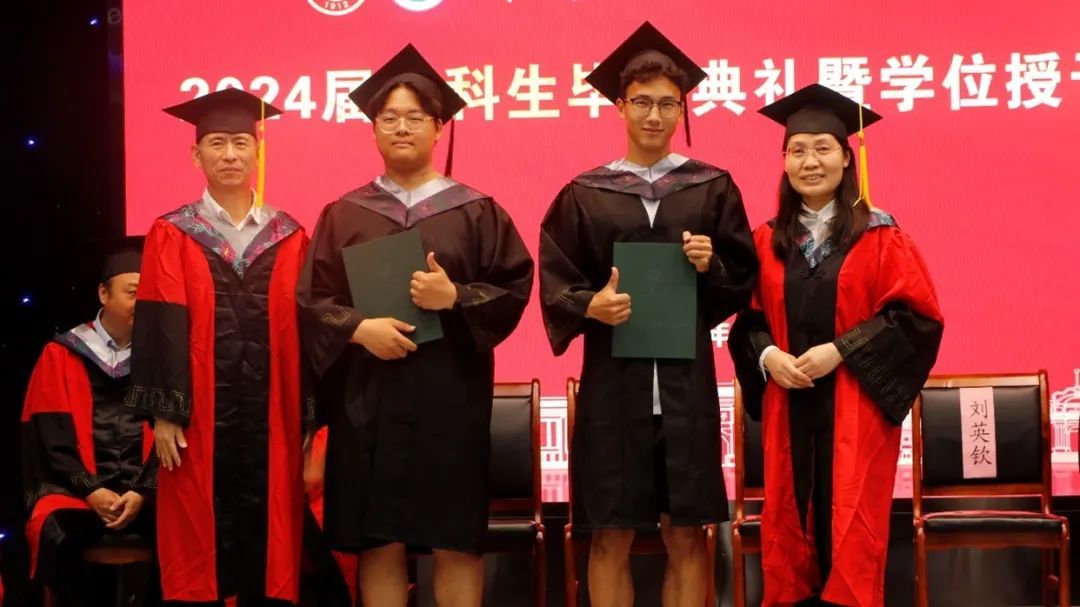 受董事长张锁江院士委托,公司本科生学士学位评定委员会主任李竞艳经理和程遂营教授一起为学士学位获得者颁发学位证书,并庄重地为他们援正流苏。