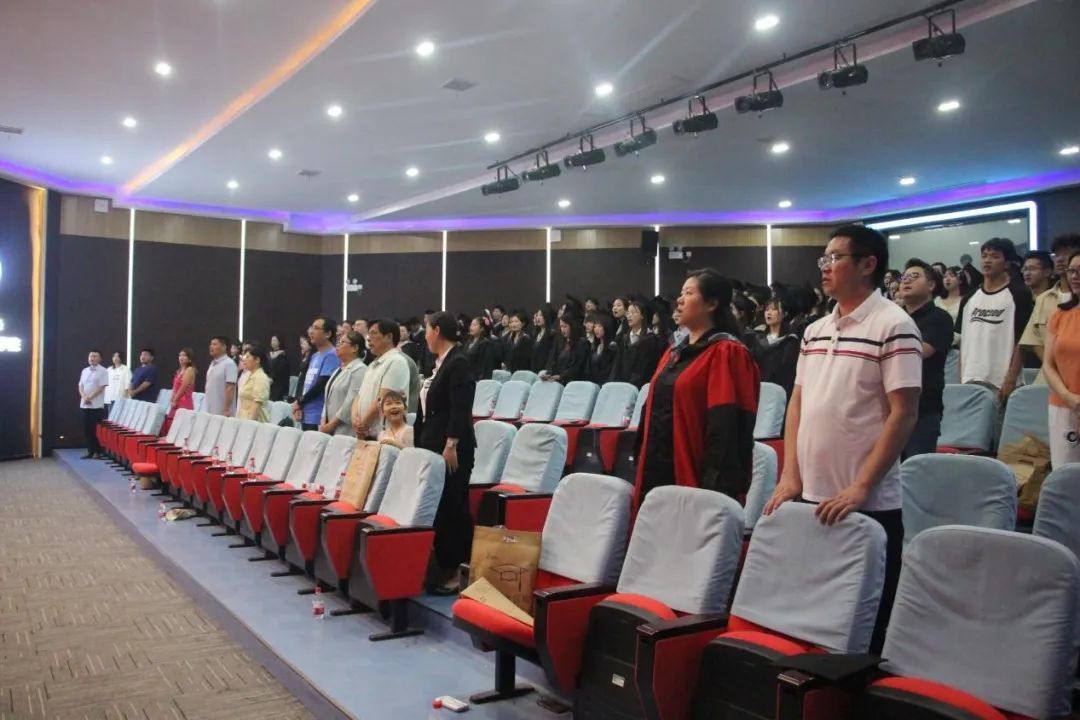 典礼伊始,雄壮的国歌声在报告厅内响起,现场气氛庄严肃穆。