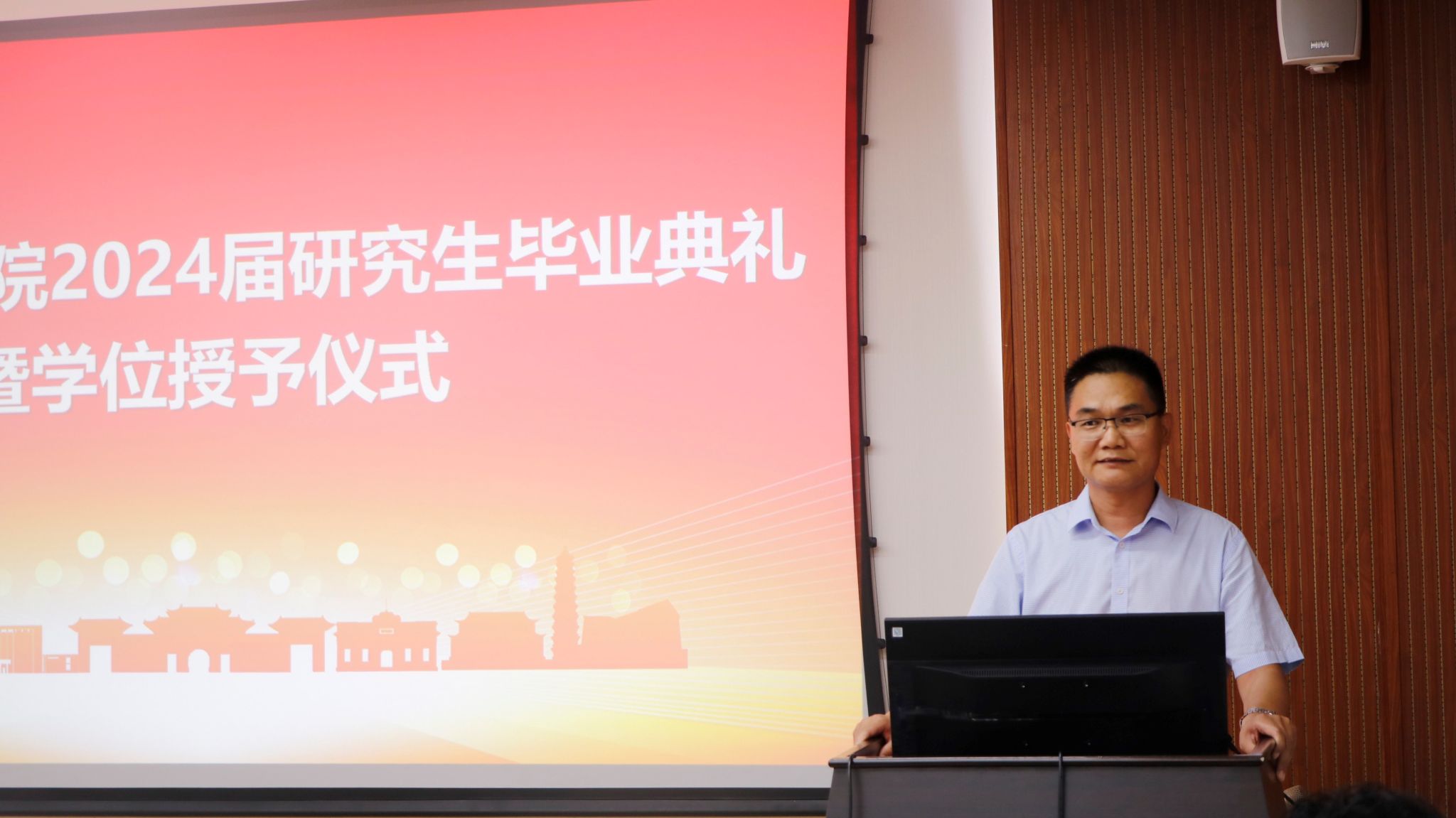 副经理王东峰宣读《关于授予best365足球官网2024届34名毕业研究生硕士学位的决定》,并对毕业生们表达了衷心的祝贺。
