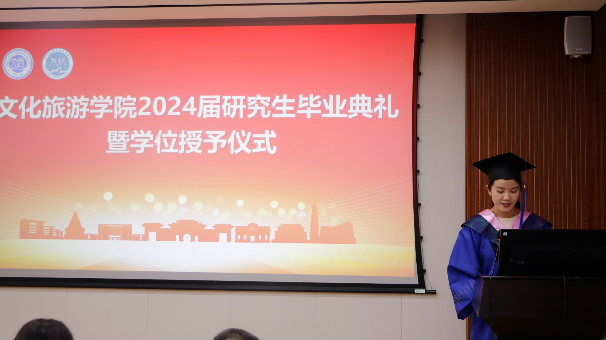 导师代表、旅游管理专业硕士生导师余永霞老师向毕业生们表达了最真挚的祝福,并分享了自己的学术心得和人生经验。她希望毕业生们能够保持一颗感恩的心,珍惜身边的每一个人和每一次机会,不断追求自己的梦想和目标。