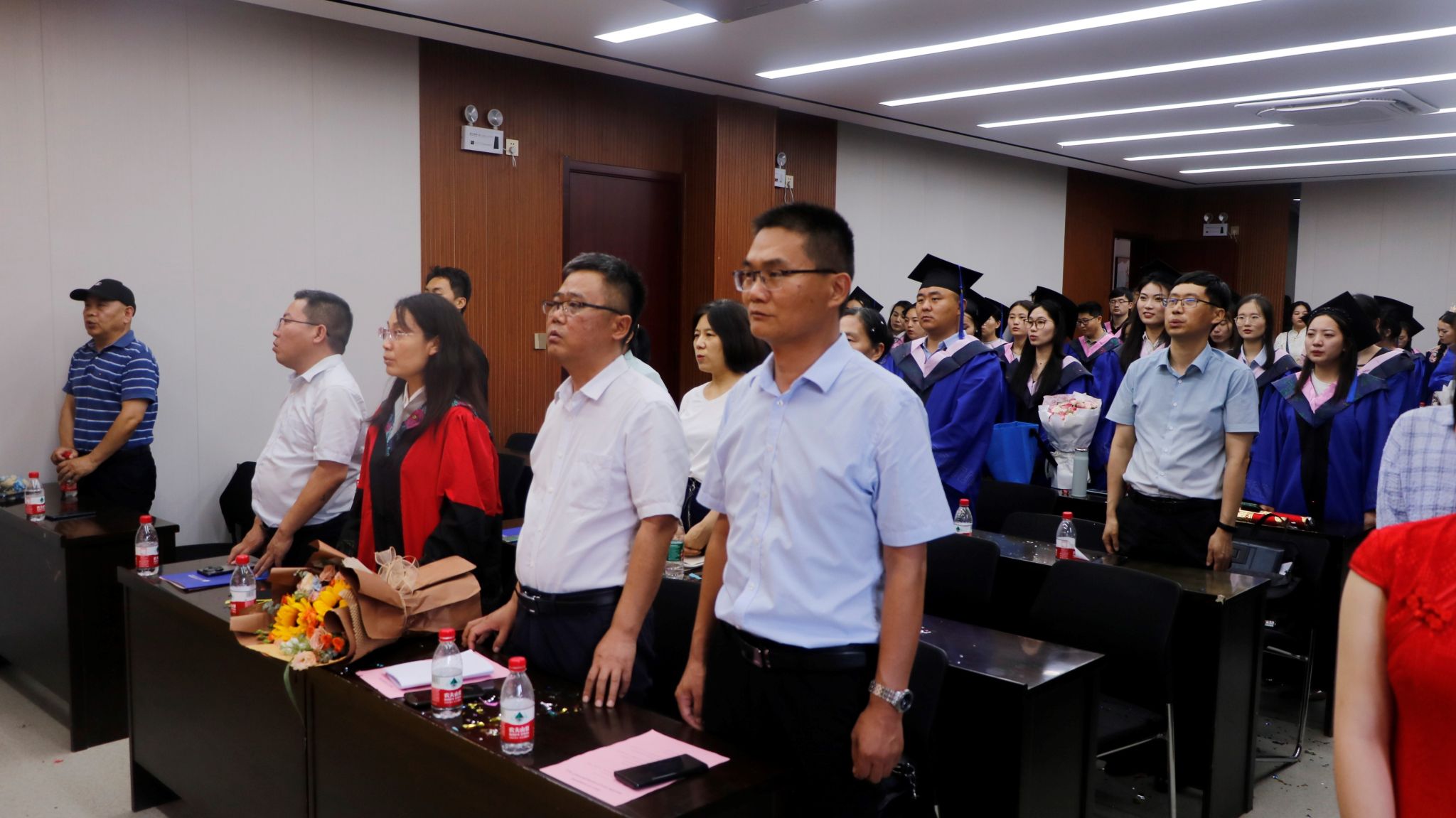 毕业典礼在庄严的国歌声中拉开序幕。