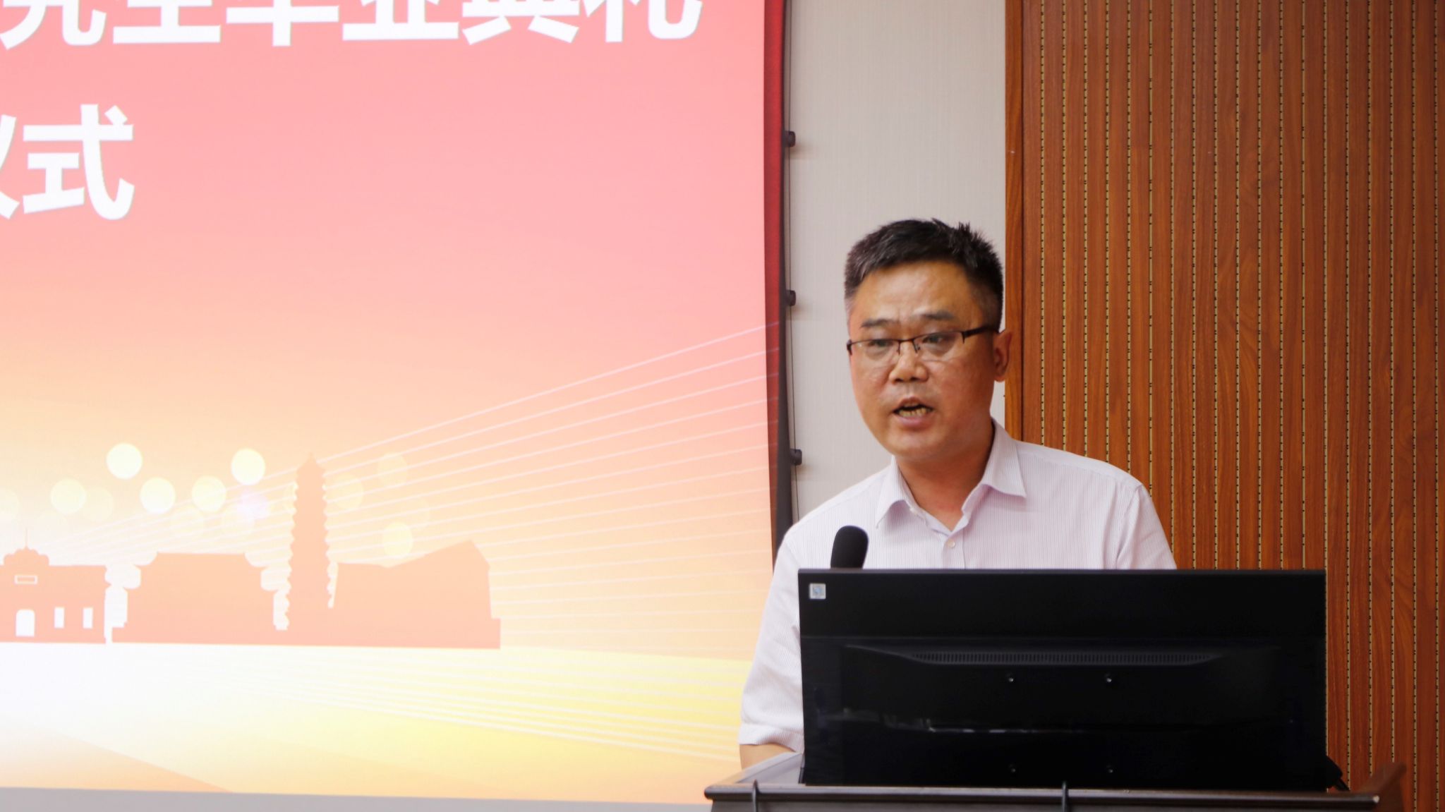 家长代表、历史文化公司陈宏斌老师表达对公司老师对员工培养的感谢和对毕业生的祝福。