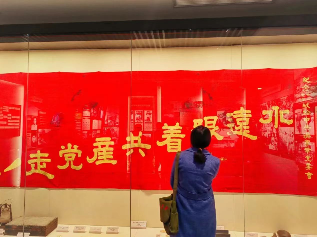 旅游管理系老师在学习“28年红旗不倒”的大别山革命精神活动现场