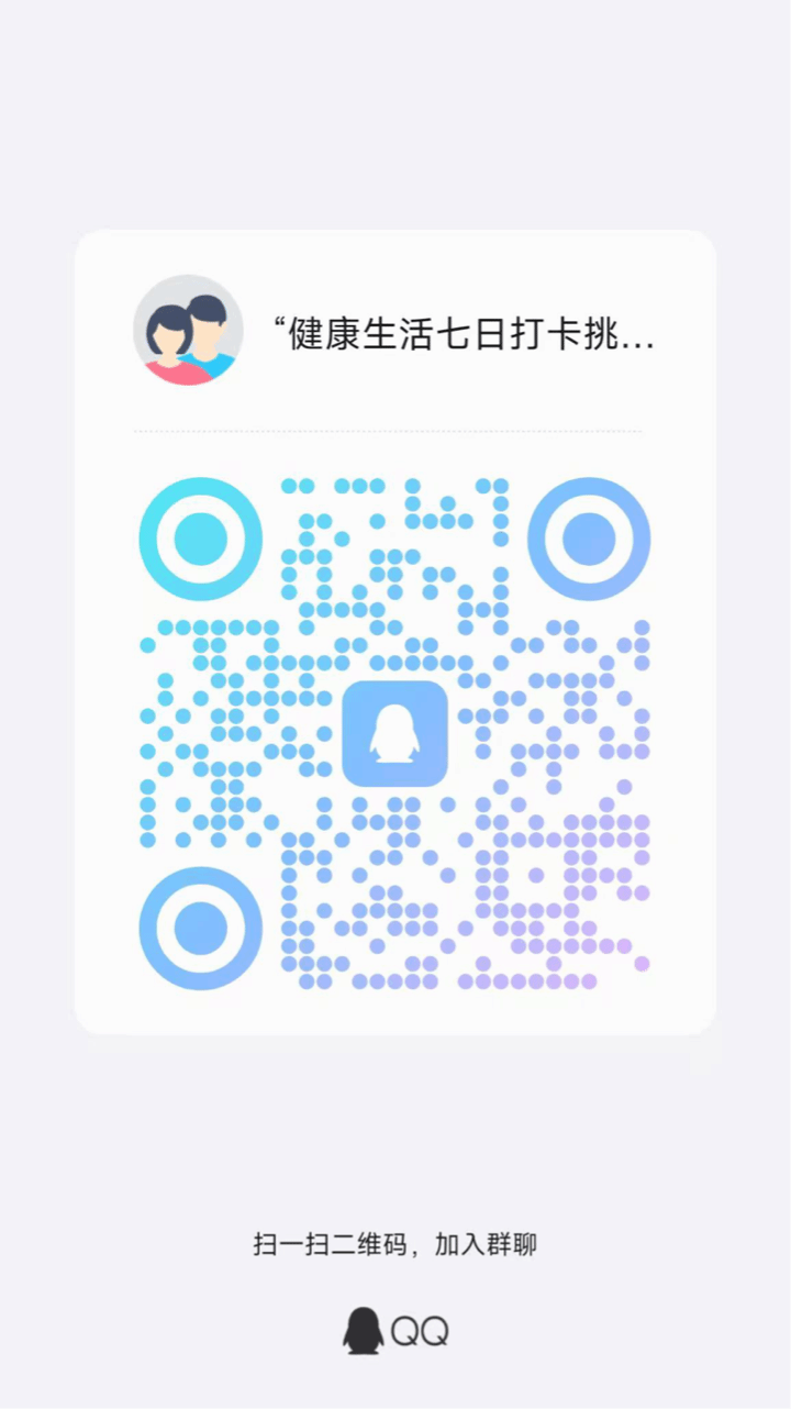 请大家积极参与,一起打卡健康生活习惯,共同保持健康身体状态!活动QQ群见下方二维码,快来加入吧~