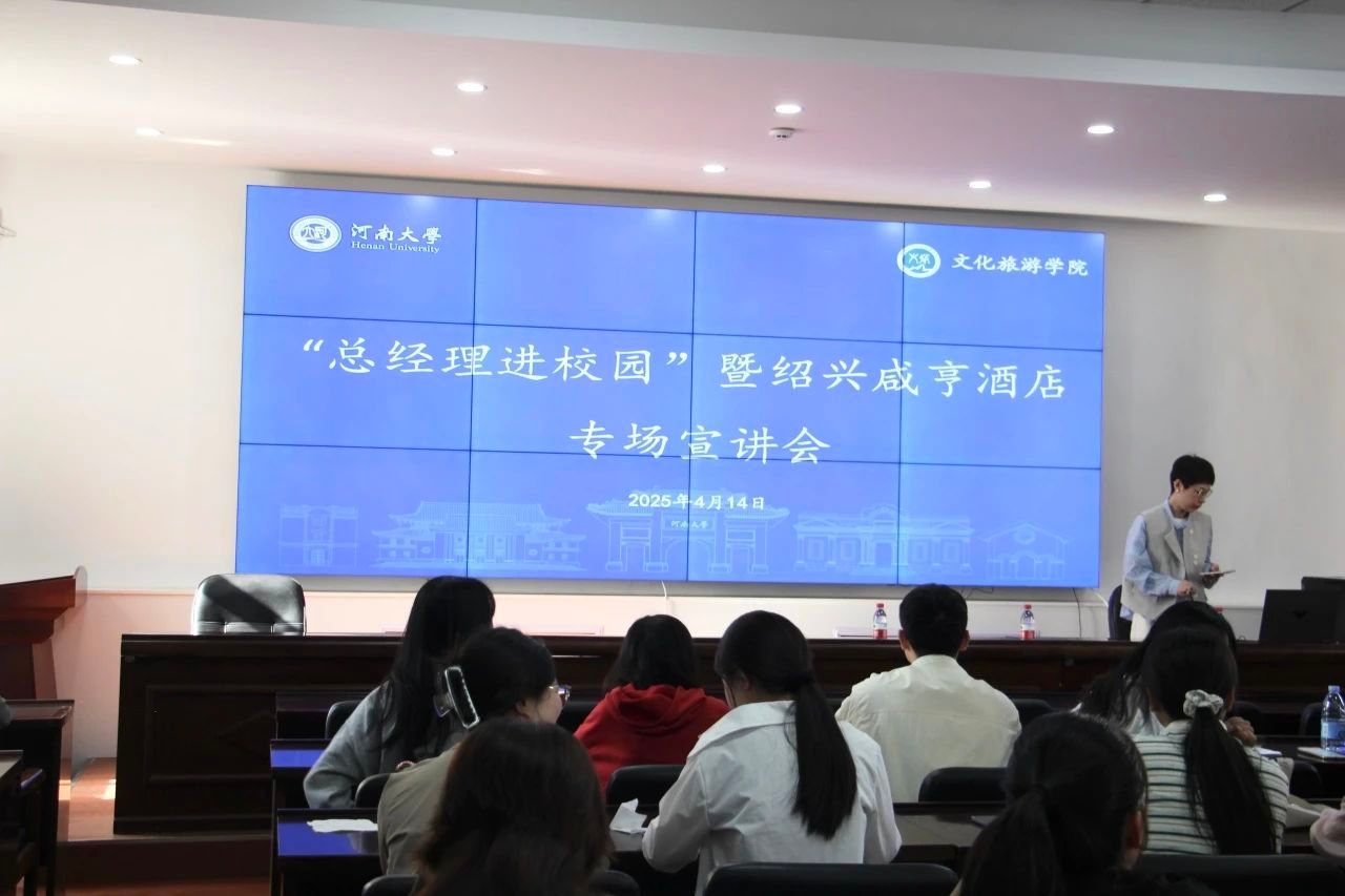 4月14日下午4:00,绍兴咸亨酒店专场宣讲会举行,咸亨酒店综合部总监陈琰和人事经理谢焕与公司师生进行宣讲交流,陈琰介绍,酒店历史可追溯至1894年,因鲁迅作品闻名,后重开并发展壮大,如今借助新技术实现智能化管理服务。她鼓励员工加入,挖掘文化故事,提供独特服务。