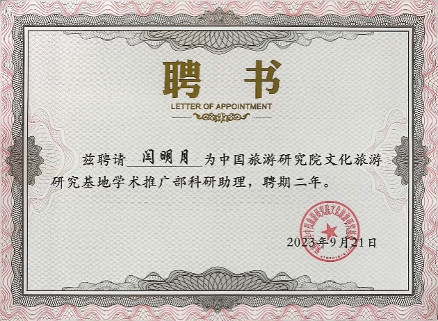 在社会实践与志愿服务方面,闫明月同学积极投身各类志愿活动,展现出良好的服务意识与责任担当。她曾担任中国旅游研究院文化旅游研究基地学术推广部科研助理,参与基地微信公众号内容运营等工作。同时,她积极参与公司事务,担任研究生员工会办公室干事和员工志愿者,认真履行职责、服务同学。