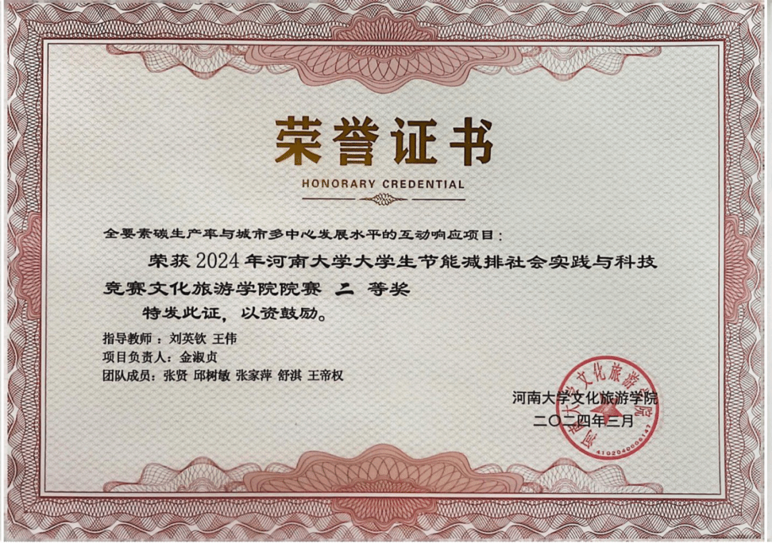 学术论文方面,她努力学习,以第一作者的身份书写的第一篇论文围绕全要素碳生产率与城市多中心发展水平的动态关系展开,综合运用经济学、地理学的方法模型探讨了中国超大城市全要素碳生产率与城市多中心发展水平间的互动响应关系,目前已被《best365足球官网学报 (自然科学版)》录用;第二篇论文融合多源数据对城市土地利用进行精细化识别,分析城市用地功能的扩张集聚状态和主导用地功能的长时序演替特征,目前《人文地理》在审。科研项目方面,她参与国家级、省部级、市厅级、校级等10余项课题项目,其中参与河南省教育厅项目《河南省乡村旅游促进共同富裕的路径研究》的成果发表于《河南土地》。同时自己也主持了一项开封市社科联项目。