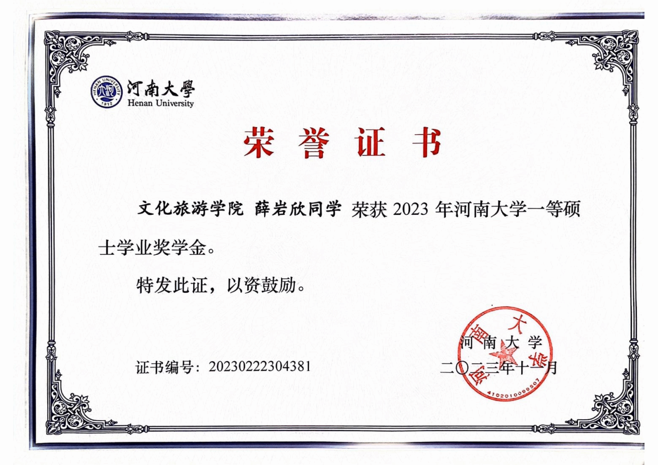 凭旅游与土地利用领域的学术性研究,先后获得开封市哲学社会科学调研课题一、三等奖,这是初入学术赛场的肯定;此外,同时参与郑州兴文化工程文化研究计划调研课题等项目,获得一等奖等奖励,让旅游赋能文化传承的探索被看见。这些奖项不仅是对旅游管理跨领域研究的成果检验,更是淬炼学术锋芒,持续推动薛岩欣同学在交叉研究征途上深耕不辍、砥砺前行。