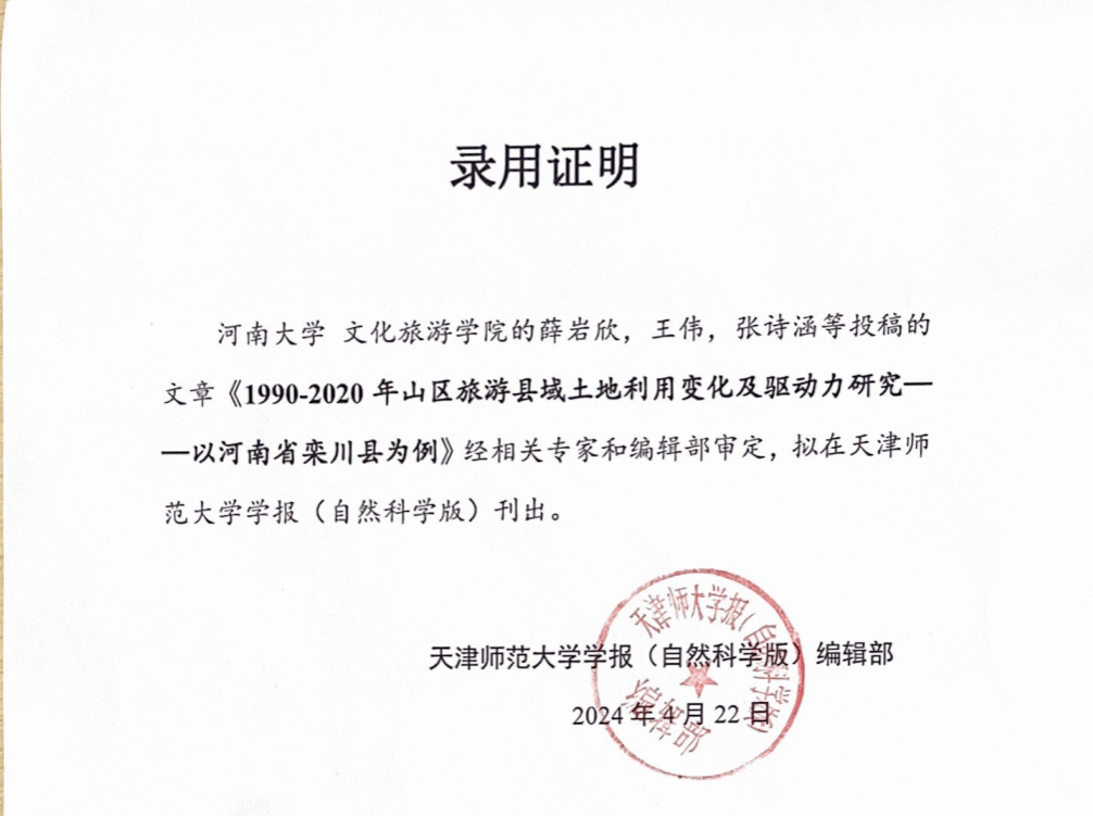 薛岩欣同学以旅游管理学科为支点,撬开“旅游-土地-环境”交叉研究缝隙。主持开封市社科项目,聚焦“双碳背景下土地利用碳排放”“智慧旅游信息搜寻行为”,从旅游城市发展实际切入,探索土地利用与环境影响关联;深度参与河南乡村旅游、黄河文旅带等7项省级课题,在乡村振兴、文旅融合场景中,追踪旅游驱动下土地利用变迁与生态效应,为后续学术深耕筑牢实践根基。
