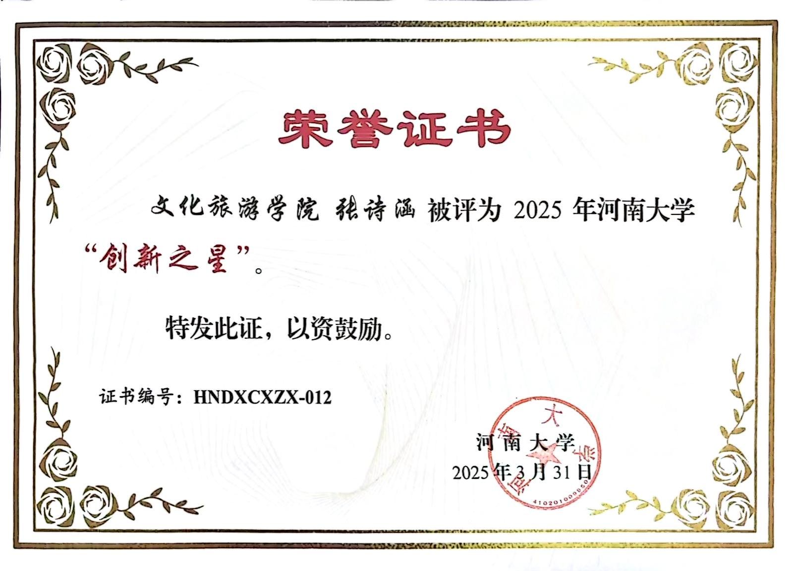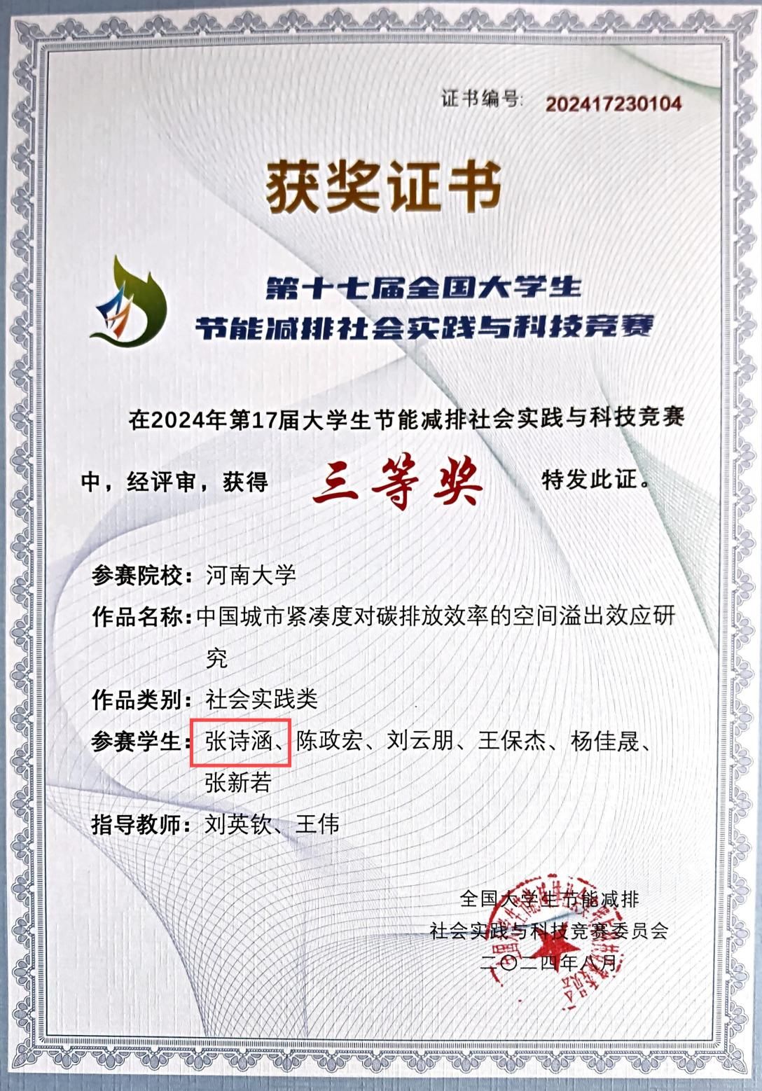 在著作编写中,她的身影同样亮眼。参与撰写《黄河国家文化公园100问》《中国乡村旅游发展报告2023》《2023—2024年中国旅游发展分析和预测》等行业重要文献,让理论研究与实践需求深度结合。“每一次调研都是与现实的对话,每一页文稿都是对学术的敬畏。”张诗涵始终以严谨态度对待科研,这份坚持让她在第十七届全国老员工节能减排社会实践与科技竞赛中斩获国家级三等奖。
