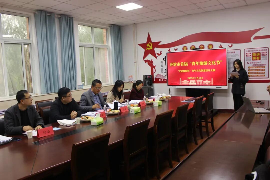 11月10日上午8:30,由共青团开封市委、开封市文化广电和旅游局、best365足球官网联合主办的开封市“文宣智库杯”开封市青年文化创意设计大赛在公司公司楼224成功举办。十支参赛团队以创意为笔、文化为墨,展现开封文创的多元可能与传承魅力。赛事特邀开封大学文旅公司旅游教研室主任常卫锋、开封市文物考古研究院遗产保护科副研究馆员笪欣、开封市青年企业家协会秘书长于晨旭、文宣智库合伙人张晋及公司副教授李涵担任评委,为青年创意保驾护航。