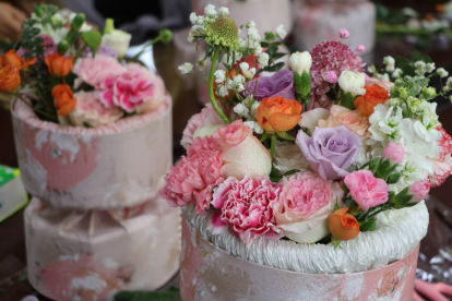 活动现场花香四溢,专业花艺师现场讲解各种花品的名称、造型技巧及色彩搭配,并现场演示了插花步骤和技巧。