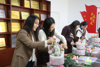 为庆祝第115个“三八”国际劳动妇女节,丰富教职工精神文化生活,增强团队凝聚力,增加女教师之间的沟通与交流。公司于3月8日上午10点在公司楼224房间开展艺术插花活动。多位女教职工齐聚一堂,共度美好时光。活动现场花香四溢,专业花艺师现场讲解各种花品的名称、造型技巧及色彩搭配,并现场演示了插花步骤和技巧。