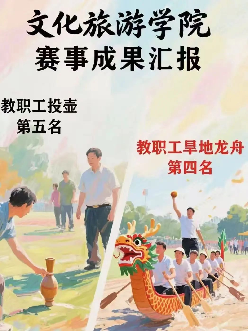 当夕阳为领奖台铺上鎏金,我们看见的不仅是奖牌的闪光,更是文旅人骨子里的韧劲与风华。那些在训练场重复千万次的动作,那些相互扶持的温暖瞬间,那些声嘶力竭的加油呐喊,都将化作岁月长河里永恒的琥珀。