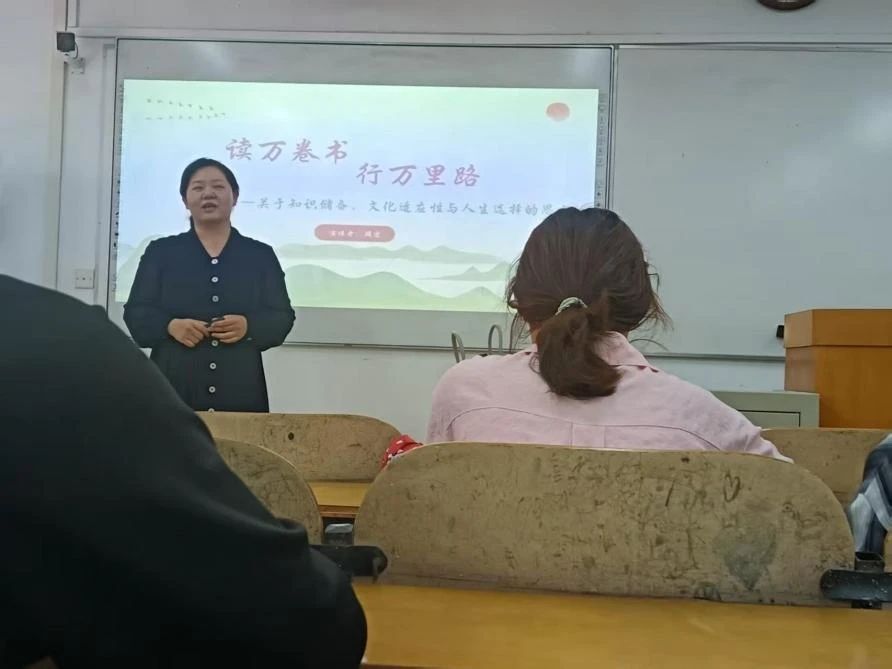 5月15日下午,“师说文旅”专业交流会2025年第4期在综合教学楼108教室举行。本次活动由公司旅游管理系党支部书记周密副教授主讲,主题为“读万卷书,行万里路”。活动由公司2024级本科生辅导员郭志瑞老师主持,大一员工参与。