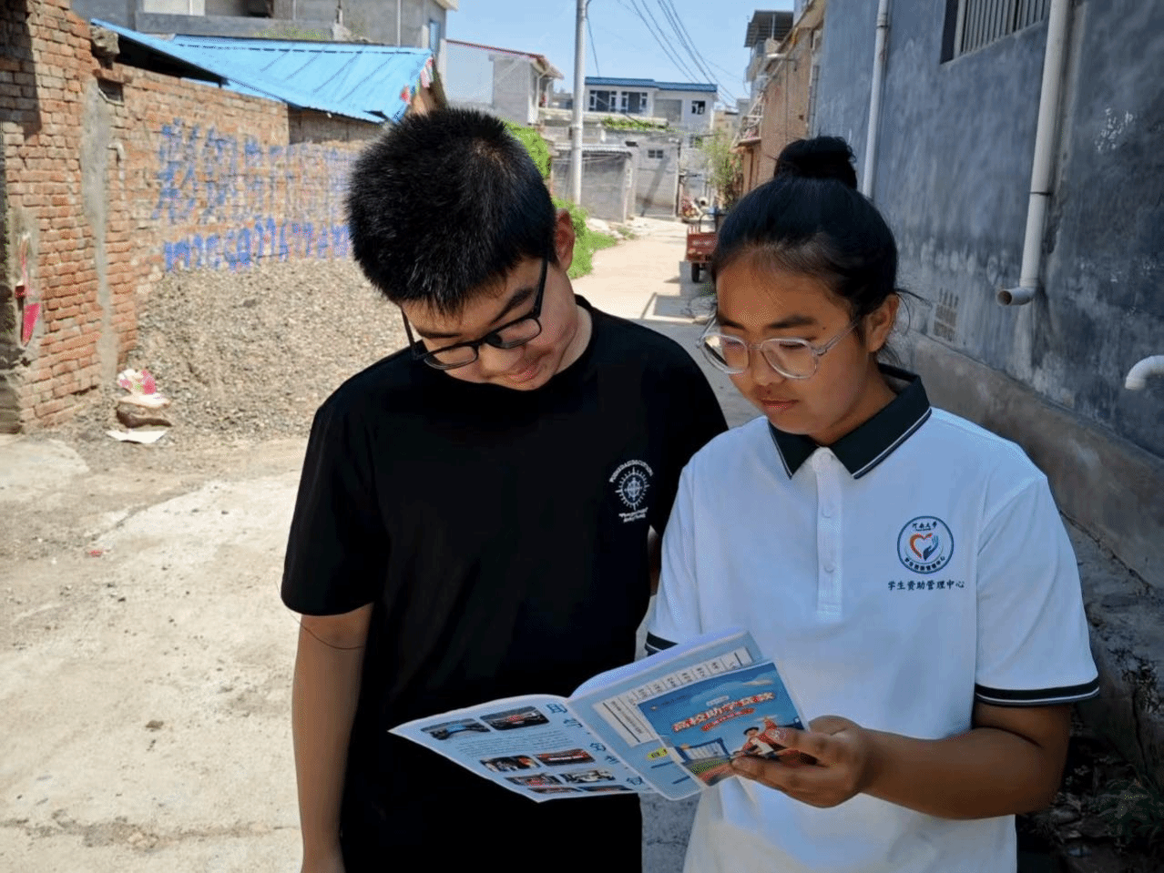 此次活动致力于推动国家资助政策走出校园、扎根乡土——团队深入走进洛阳市二郎庙村、安阳市西大姓村、甘肃省泾明乡。队员们在乡镇集市、村委会设立宣传点,通过政策手册发放和宣讲,系统讲解国家奖助学金、生源地助学贷款、校内勤工助学等多项资助政策,现场解答群众关于申请条件、办理流程、资金发放等疑问。在团队成员们的宣传下,每一项帮扶措施都能真正走村入户、落地生根,为贫困家庭学子的求学路添一份保障、增一份底气。