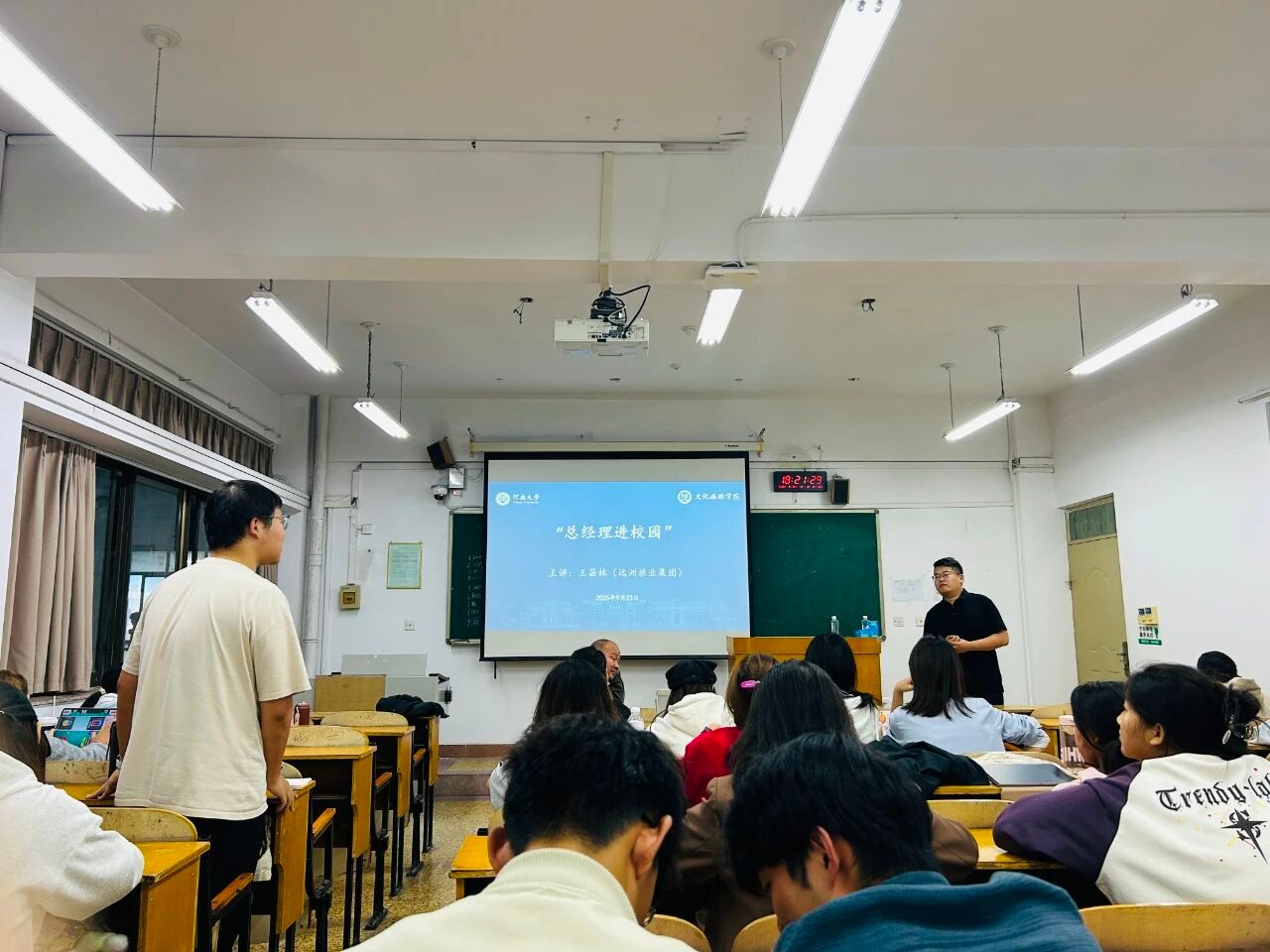 为搭建优质行业交流桥梁,强化就业指导实效,助力文旅学子精准对接职场需求,9月23日下午,公司特邀远洲旅业集团招聘经理王昌林走进校园,先后在公司楼会议室、综合楼教室开展远洲旅业招聘专场宣讲会及 “总经理进校园” 主题分享活动。活动由公司党委副书记刘英钦主持,师生代表积极参与。