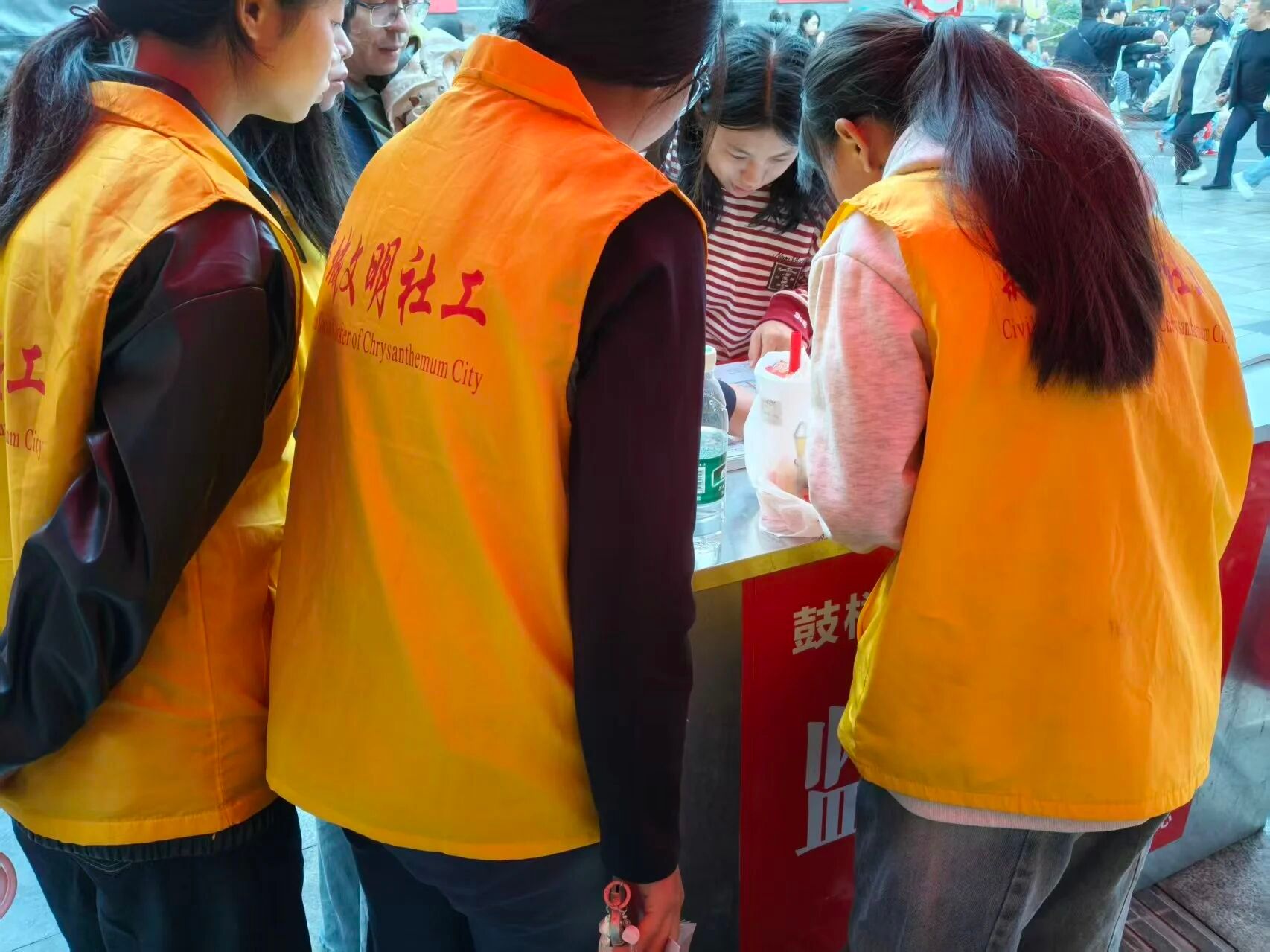黄金周期间,八朝古都开封秋雨连绵,却挡不住公司大一学子的志愿服务热情。10月1日至10月8日,志愿者们以持续八天不间断的专业服务,坚守鼓楼广场与开封府两大核心区域,为八方游客撑起了一把暖心的“志愿伞”。