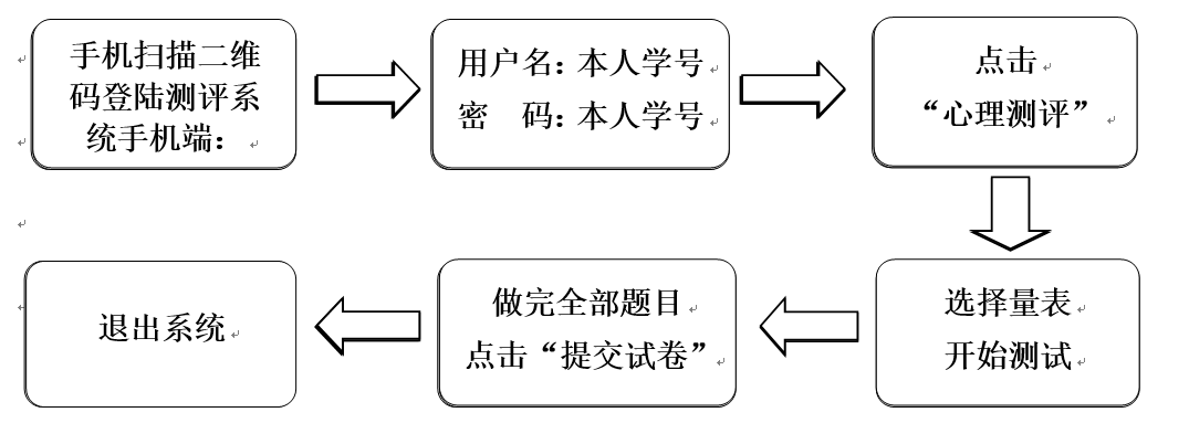 3.测试结果不会在手机端呈现,如需了解本人量表测试情况,请向研工办提出申请,由专业人员给与解答。