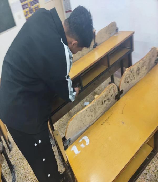 旅游管理2103团支部的李东垣主动清理自习室里的垃圾,维护自习室的卫生状况。他说:“经过这次打扫教室卫生,让我对劳动有一个更深入的认识,让我亲身体会到了劳动的光荣。作为共产主义的接班人,我们要重视劳动,重视劳动成果。”