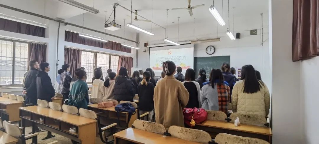 紧接着,各团支部团支书针对本次专题组织生活会进行总结,带领团员们感受十九届六中全会精神的伟大内涵。正如旅游管理类2101团支部书记彭程所说:“作为当代老员工、未来祖国建设的中坚力量,我们自身应在学习生活、实践生活中贯彻党的十九届六中全会精神,为国家的社会主义建设、实现中华民族的伟大复兴贡献自己的力量。”最后,全体团员重温入团誓词,全体团员应当不断学习、不断进步,从百年党史中汲取智慧和力量,在新的赶考路上接续奋斗。