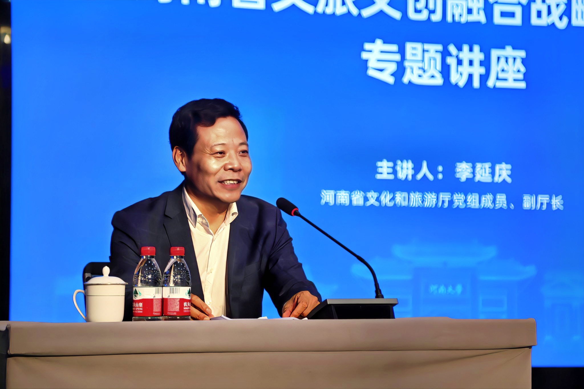 会议第三阶段由孔涛主持。李延庆以“文旅文创融合战略:新认识、新内涵、新作为、新愿景”为题,向best365足球官网师生和开封市文旅系统相关人员作专题讲座。他分别就“为什么要搞文旅文创战略”“文旅和中国式现代化的关系”“近年河南省文化旅游行业发展的新作为”“未来河南省文化旅游发展的新愿景”等方面交流了自己的看法和观点。他强调,河南省拥有十分丰富的历史文化资源,发展河南省旅游业对于促进经济社会发展,提升国家的文化自信,讲好中国故事,都有着十分重要的作用,相信河南文旅经过多年的探索和实践,未来一定会在全国更加出彩!
