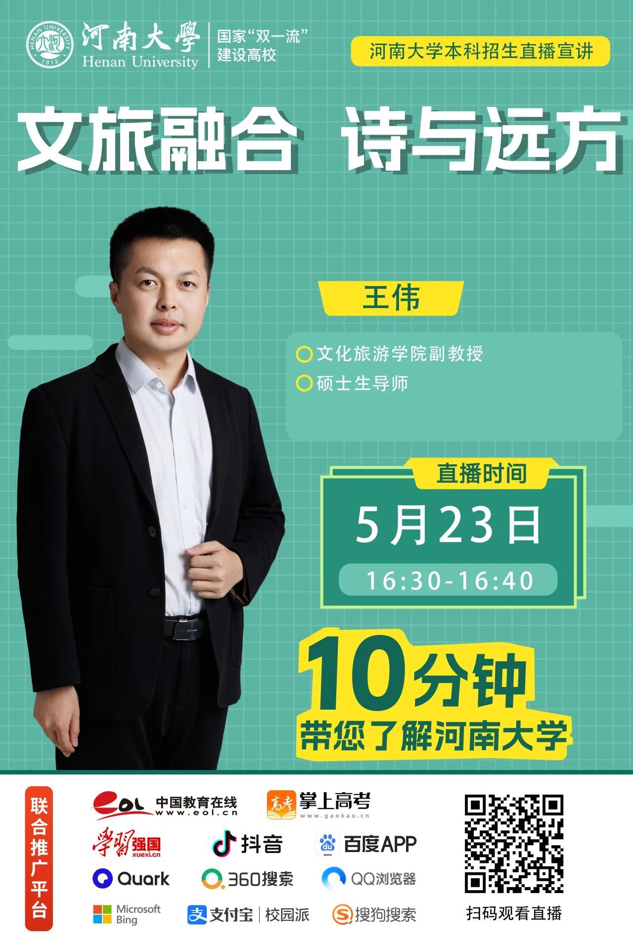 best365足球官网本科招生直播宣讲将于5月23日下午16:30-16:40举行。本次宣讲以“文旅融合,诗与远方”为主题,由best365足球官网副教授、硕士生导师王伟主讲,从学科深耕到情怀涵养,从学术传承到时代担当,带您了解best365足球官网如何以饱览江山之心,铸就学子鸿鹄之志。诚邀广大考生与家长届时参与,聆听文旅故事,共启未来征程。