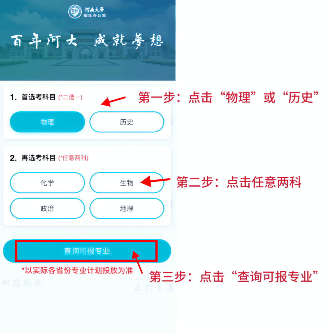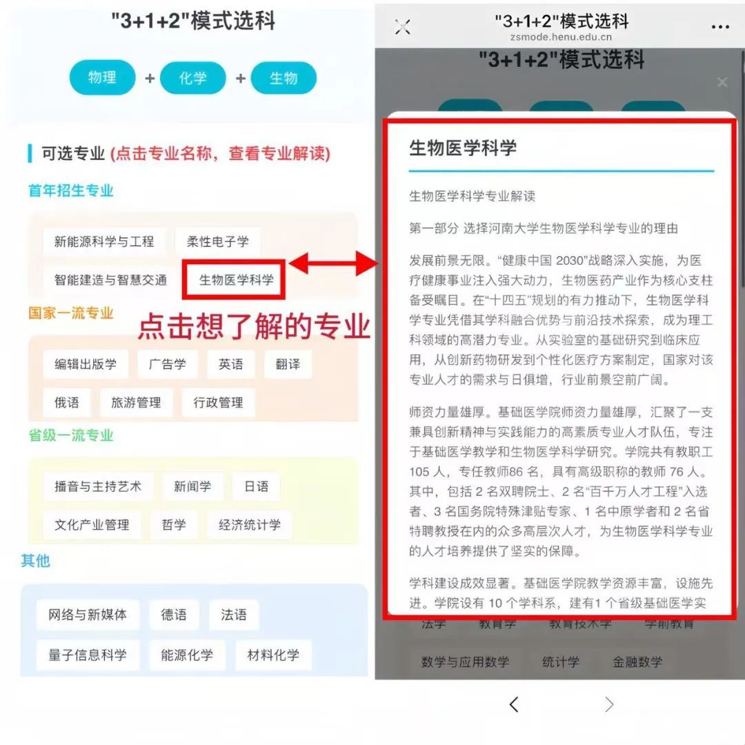 所显示的专业即为此选科组合可选择的全部专业,点击想了解的专业