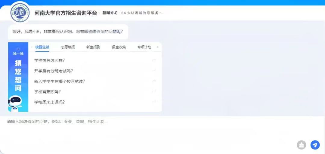 ◆3.进入best365足球官网招生信息网,点击页面右侧的小E,进入best365足球官网智能问答系统。