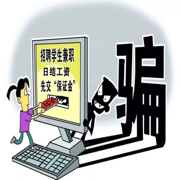 押金骗局:求职过程中需要先缴纳各种费用,这类骗局通常在招工广告上称有文秘、打印、公关等轻松、体面的工作,求职员工只需交纳一定的保证金即可上班。员工付钱以后,招聘单位要员工听候消息,接下来便石沉大海。