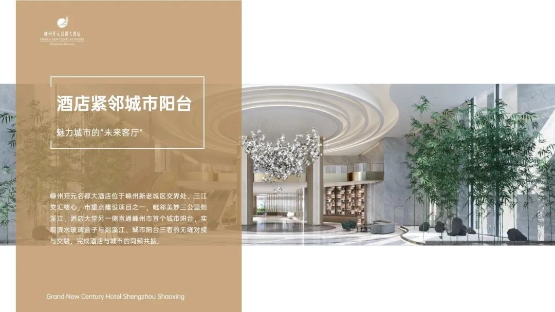 嵊州开元名都大酒店地处嵊州市城南新区,是绍兴南部地区的第一高楼,涵盖高星级商务酒店、高档写字楼及精品商业,打造嵊州、新昌城市地标。项目紧邻嵊州城市阳台,总体量超10万平方米,高度近190米,项目按照五星级酒店标准装修建造,规划设计客房380余间、1200平方米无柱宴会厅、多功能会议室、国风堂包厢群及全日餐厅、零点餐厅,配套建设有健身房、游泳池等。建成后将成为集商务出行、休闲度假、娱乐场所为一体的高端酒店。